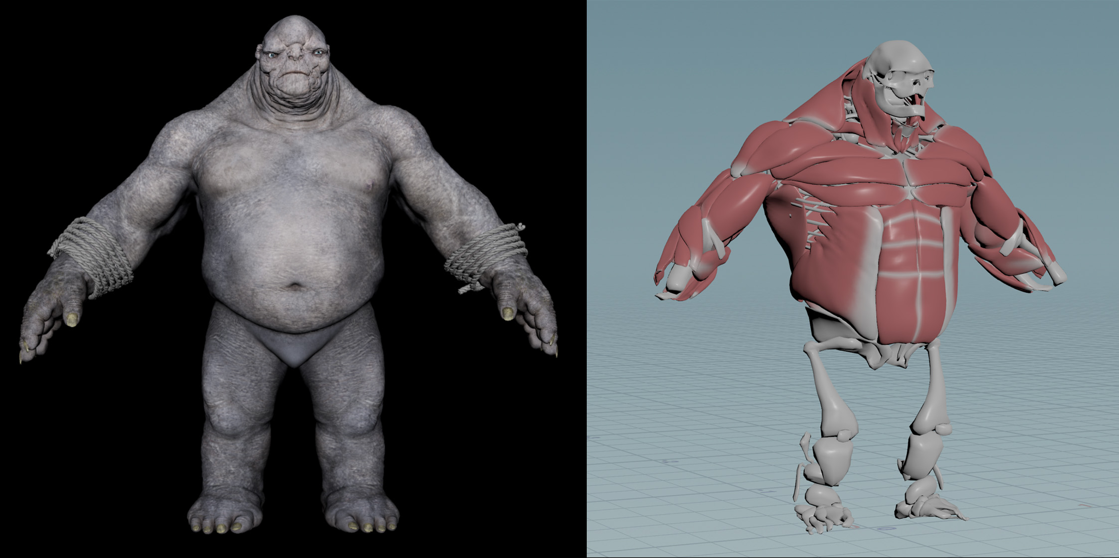 We also worked with the show production’s Troll asset, but took it much further. The original model didn’t have the complexity we needed for large-scale, slow-motion muscle flexes — so we built our own muscle system from scratch, letting the Troll move and breathe like a living, dangerous creature.