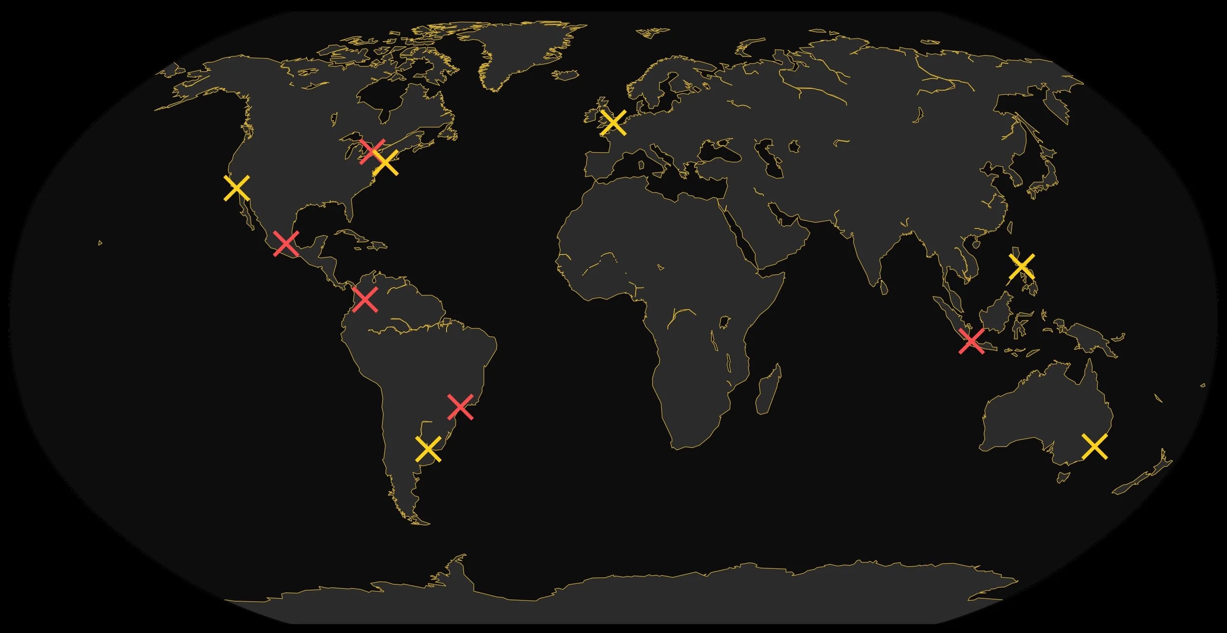 Red X’s indicate sites where our 3D billboards appeared, while yellow X’s represent cities that featured our OOH and social media “takeover” content. Together, they form a true global footprint for The Rings of Power launch.