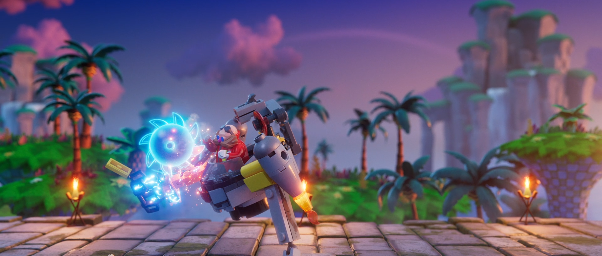 One spin dash, one smashed Eggman machine, and a lot of flying LEGO.